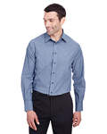 4.3 oz/yd² / 147 gsm, 39% polyester, 58% cotton, 3% lycra® pinpoint chambray; Patented pucker-free taped seams; Specially fused collar, cuffs and placket for total garment performance; Dyed-to-match pearlized buttons; Specially constructed adjustable collar for up-to an extra inch of stretch; Straight collar with built-in collar stays; Bias cut back yoke; Wrinkle-free, stain-release; Slim fit; Easy care;