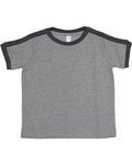 4.5 oz., 100% combed ringspun cotton fine jersey; CVC Colors are 60/40; Heather is 93/7 combed ringspun cotton/polyester; 4.5 oz. 100% combed ringspun cotton jersey; Granite heather & vintage smoke are 60/40 combed ringspun cotton/polyester vintage heathered jersey; Contrast ribbed collar and sleeve openings; Self-fabric back neck tape; Contrast topstitched self-fabric shoulder stripe; Side seam construction; Double needle bottom hem; EasyTear™ label; CPSIA compliant tracking label in side seam; Machine washable/ tumble dry low; Fit: Toddler Unisex; Note: Color descriptions indicate Body/Trim colors, e.g. Vintage Green/White indicates Vintage Green shirt with White trim.;
